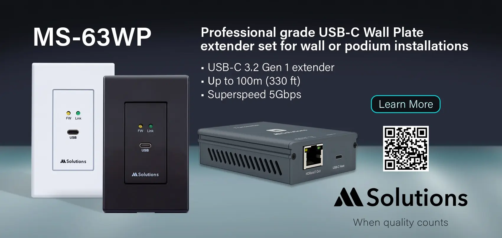 After the success of the MS-TestPro, the team were asked by partners across the World to add the MSolutions stamp of quality to an expanded range of AV solutions. This has led to our engineers developing an range of HDBaseT, USB and KVM extenders that perform to the highest measurable standards of performance, guaranteeing long term reliability for our partners. As we expand our principles of quality assurance, the Solutions brand is quickly growing into a name our industry associates with bullet proof standards of quality.